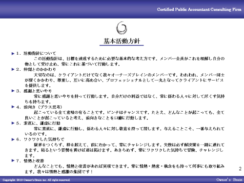 当社オーナーズブレインは、お客様の成功の実現を本気でご支援し、オーナー様の右腕、知恵袋となる、会計・財務の専門家集団です。