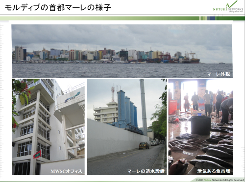 2か月ほど前の2011年8月16日には、モルディブにて海洋深層水を活用した空調や海水淡水化事業の事業化調査を開始したとの発表を行いました。600~1000mの深海から汲み上げた海水を、空調の冷熱源や淡水化の原水として活用する事業です。CO2排出量を90,000t削減することが可能とのことです。