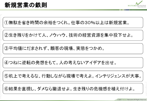 ⑥結果を直視し、ダメなら撤退せよ。生き残りの危機感を植え付けよ。