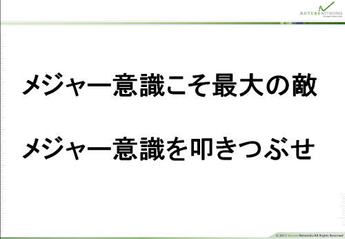 最後に新規営業で大事なこととして挙げたいのが、会社や担当者の心に潜む「自社は品質に優れた日本企業である」「業界トップクラスの会社」「中核事業部門に所属している」という“メジャー意識”である。シェアトップも中核事業も、多くは先人の業績である。大概は自身が自ら築いてきたものではない。またたとえそうだとしてもそれは過去の話である。