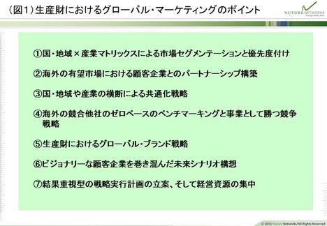 さて前回のコラムでは、生産財におけるグローバル・マーケティングの7つのポイントを紹介し、そのうち前半の3つについてそれぞれを説明した(図1)。今回は、「ポイント④ 海外の競合他社のゼロベースのベンチマーキングと事業として勝つ競争戦略」について説明したい。
