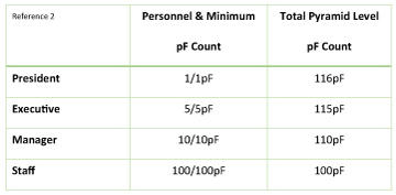 The friction creating the Fog is caused by each individual and as it is shared by more than one person, it grows expeditiously per capita within the organization’s structural pyramid (Reference 2). An X pF count of 1 is a minimum level of Fog sustained by all individuals. The higher the individual’s count, the more intense the factor of that count becomes and the higher probability that the pF count will multiply with a value greater than 1 within an organization. When more than one person becomes susceptible to the friction elevated within a pyramid category, the multiplication amount varies based on that individual’s current level of Fog.